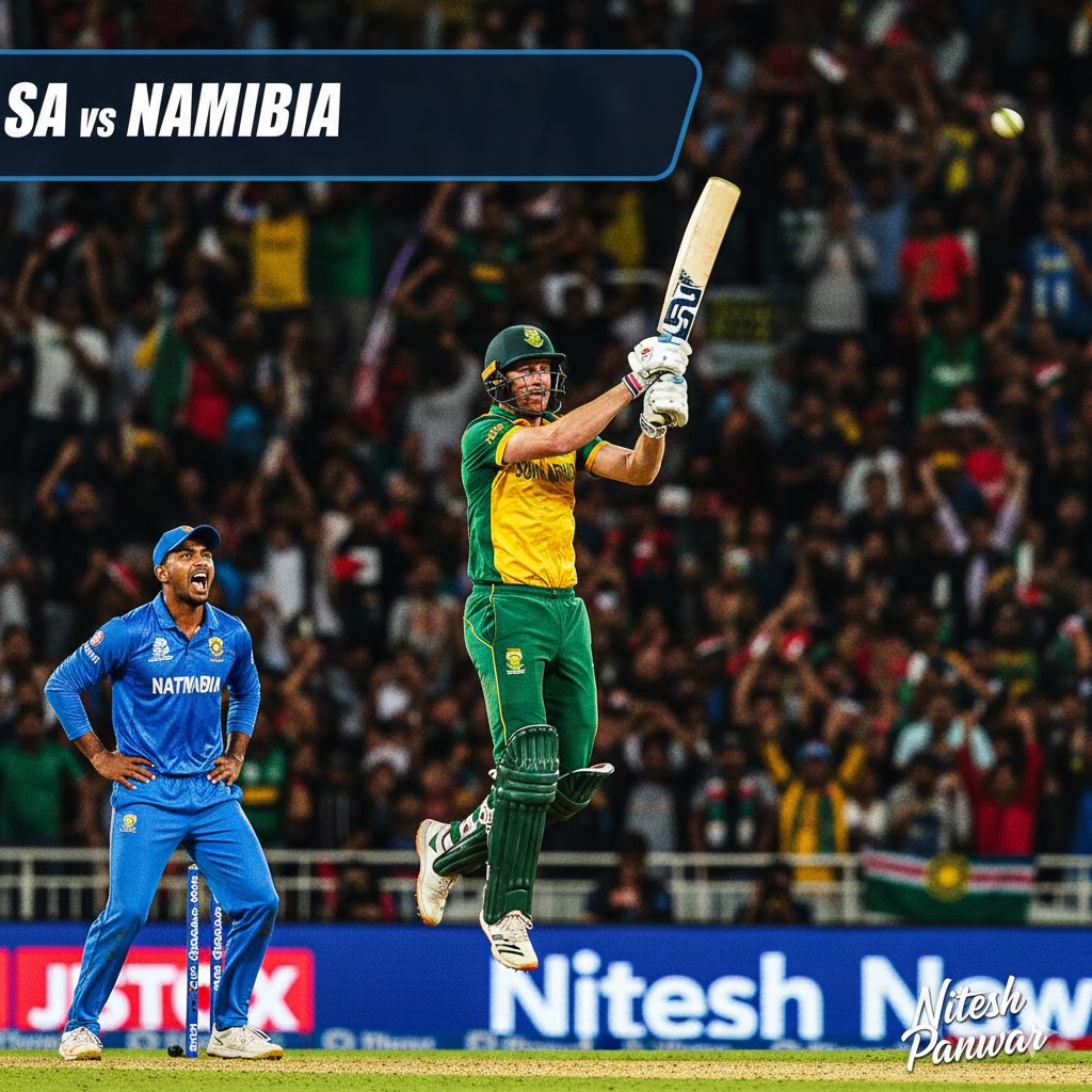 दक्षिण अफ्रीका ने अपनी ‘प्रायोगिक टीम’ भेजी थी, लेकिन उसमें शामिल थे Quinton de Kock जैसे स्टार खिलाड़ी जिनकी वापसी खुद में खबर थी। वहीं नामीबिया के पास घर का फायदा था — और हौसला आसमान पर!
