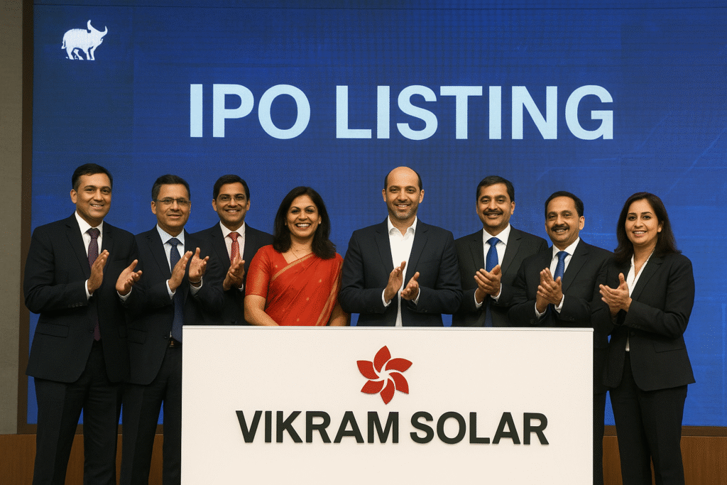 भारत में नवीकरणीय ऊर्जा क्षेत्र लगातार रफ्तार पकड़ रहा है और इसी दौर में Vikram Solar IPO की लिस्टिंग निवेशकों के लिए एक अहम घटना बनकर सामने आई। भले ही शुरुआती घंटों में शेयर की लिस्टिंग थोड़ी सुस्त दिखाई दी, लेकिन उसके बाद आए उछाल ने सबको चौंका दिया। बीएसई पर शेयर 11% से अधिक तेजी के साथ ₹381.70 तक पहुंच गया, जबकि एनएसई पर भी शेयर में मजबूती देखने को मिली। यह कहानी केवल शेयर की कीमत तक सीमित नहीं है बल्कि इसमें कंपनी के बिजनेस मॉडल, उसकी क्षमता, भविष्य की संभावनाएं और निवेशकों की उम्मीदें भी शामिल हैं। Vikram Solar IPO Listing: